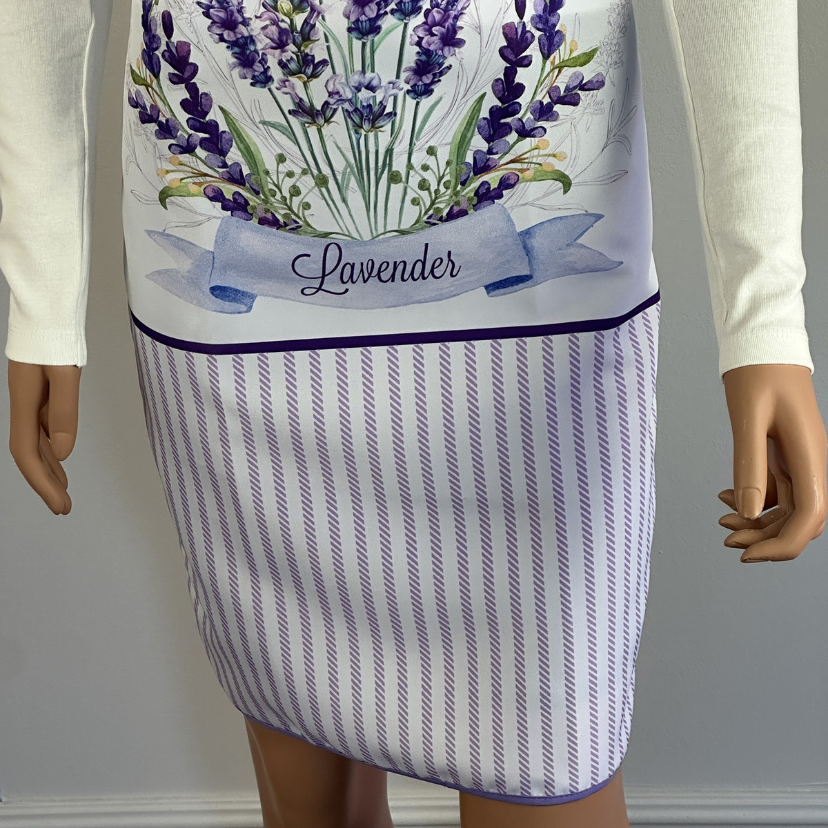 - Fartuszki kuchenne LAVENDER II - rozmiar 50x76 cm. Materiał 100% poliester z nadrukiem. Wzór z motywem lawendy.