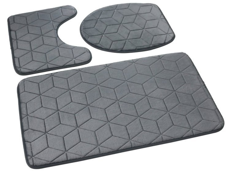 - Dywaniki łazienkowe SUMBA – z miękkiej mikroflaneli poliestrowej wypełnionej gąbką, na antypoślizgowym podłożu. Jednobarwne w eleganckie, tłoczone wzory 3D. W ofercie pojedyncze dywaniki oraz komplety 2 i 3 częściowe.