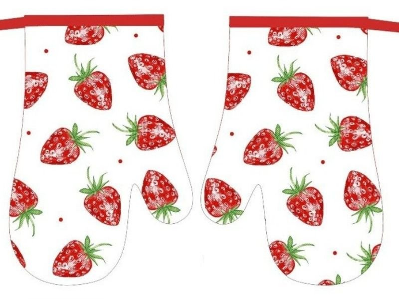 - Rękawice kuchenne z magnesem FRUITS kpl 2 szt., prawa + lewa (rozmiar 18x27 cm). Materiał 100% poliester z nadrukiem, wypełnienie z włókniny. Wszyty magnes. Wzór z motywem owoców. Model: MT173-02CE. Posiadają certyfikat CE.