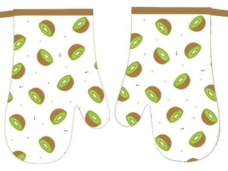 - Rękawice kuchenne z magnesem FRUITS kpl 2 szt., prawa + lewa (rozmiar 18x27 cm). Materiał 100% poliester z nadrukiem, wypełnienie z włókniny. Wszyty magnes. Wzór z motywem owoców. Model: MT173-02CE. Posiadają certyfikat CE.