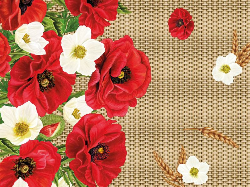 Cerata stołowa na podkładzie z włókniny w rolkach o szerokości 140cm. Skład: drukowana folia 100% PCV na podłożu z włókniny PP. Kraj pochodzenia: Turcja. Standard Oko-Tex 100.