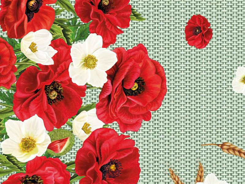 Cerata stołowa na podkładzie z włókniny w rolkach o szerokości 140cm. Skład: drukowana folia 100% PCV na podłożu z włókniny PP. Kraj pochodzenia: Turcja. Standard Oko-Tex 100.