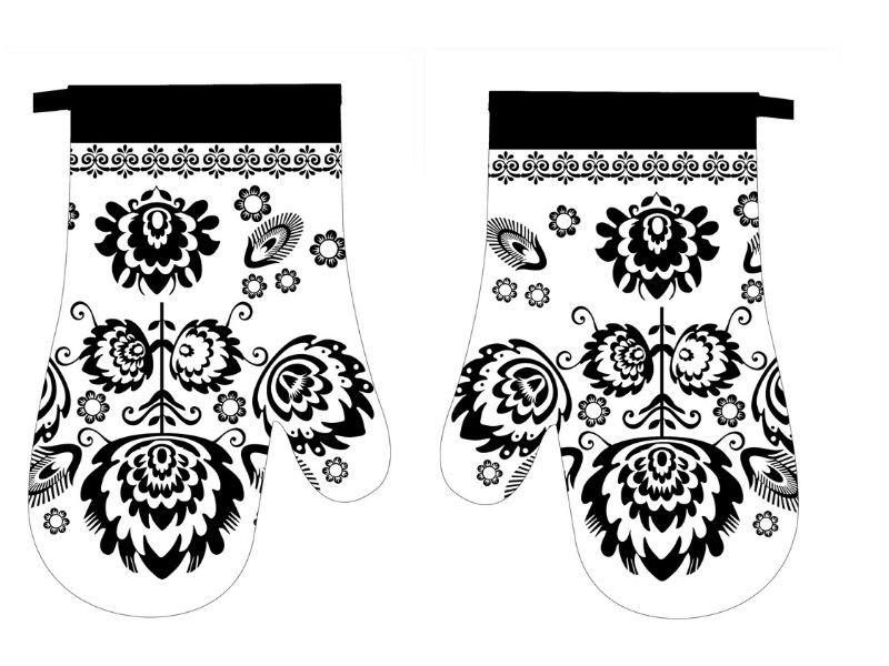 - Rękawice kuchenne z magnesem FOLK II kpl 2 szt., prawa + lewa (rozmiar 18x27 cm). Materiał 100% poliester z nadrukiem, wypełnienie z włókniny. Wszyty magnes. Wzór z motywem ludowym. Model: MT173-02CE. Posiadają certyfikat CE. Wyprodukowane w Chinach.