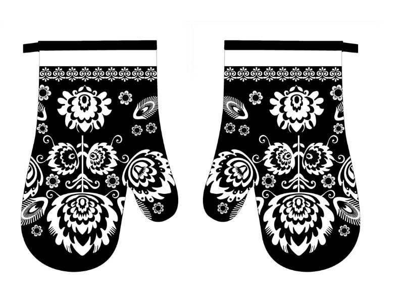 - Rękawice kuchenne z magnesem FOLK II kpl 2 szt., prawa + lewa (rozmiar 18x27 cm). Materiał 100% poliester z nadrukiem, wypełnienie z włókniny. Wszyty magnes. Wzór z motywem ludowym. Model: MT173-02CE. Posiadają certyfikat CE. Wyprodukowane w Chinach.