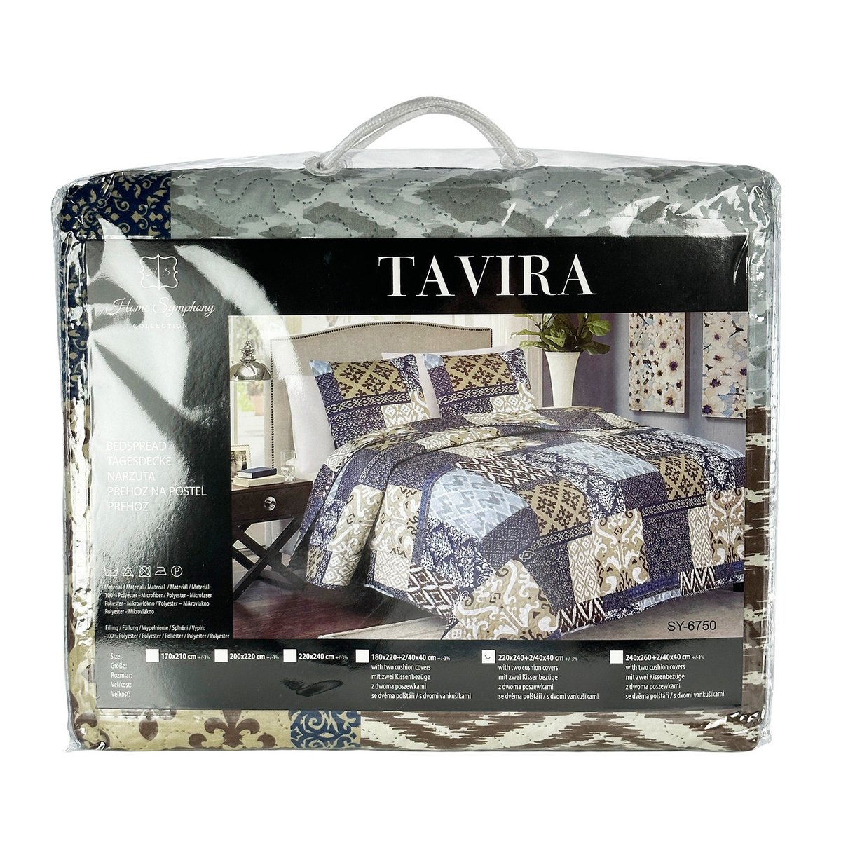 - Narzuty TAVIRA - dwustronne z nadrukiem i ozdobnym tłoczeniem. Tkanina: 100% mikrowłókno poliestrowe, wypełnienie: 100% poliester. Dostępne w wielu nowoczesnych wzorach. W komplecie 2 poszewki na poduszki.