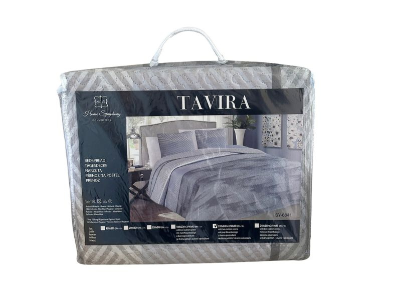 - Narzuty TAVIRA - dwustronne z nadrukiem i ozdobnym tłoczeniem. Tkanina: 100% mikrowłókno poliestrowe, wypełnienie: 100% poliester. Dostępne w wielu nowoczesnych wzorach.