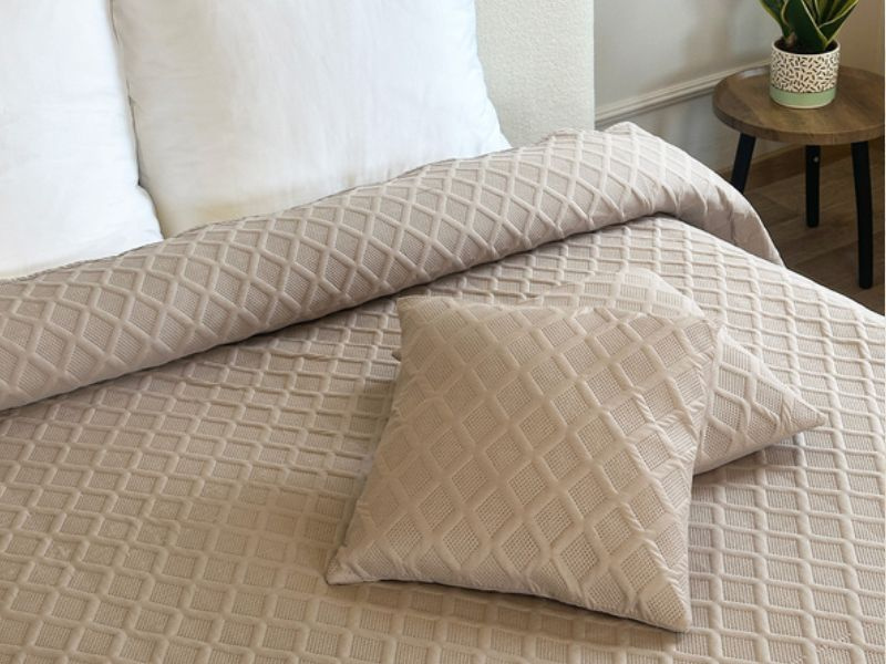- Narzuty PARLA 3D – dwustronne, jednobarwne z ozdobnym, trójwymiarowym tłoczeniem 3D.Tkanina: 100% matowe mikrowłókno poliestrowe, wypełnienie: 100% poliester. Nowoczesne wzornictwo. Wyprodukowane w Chinach