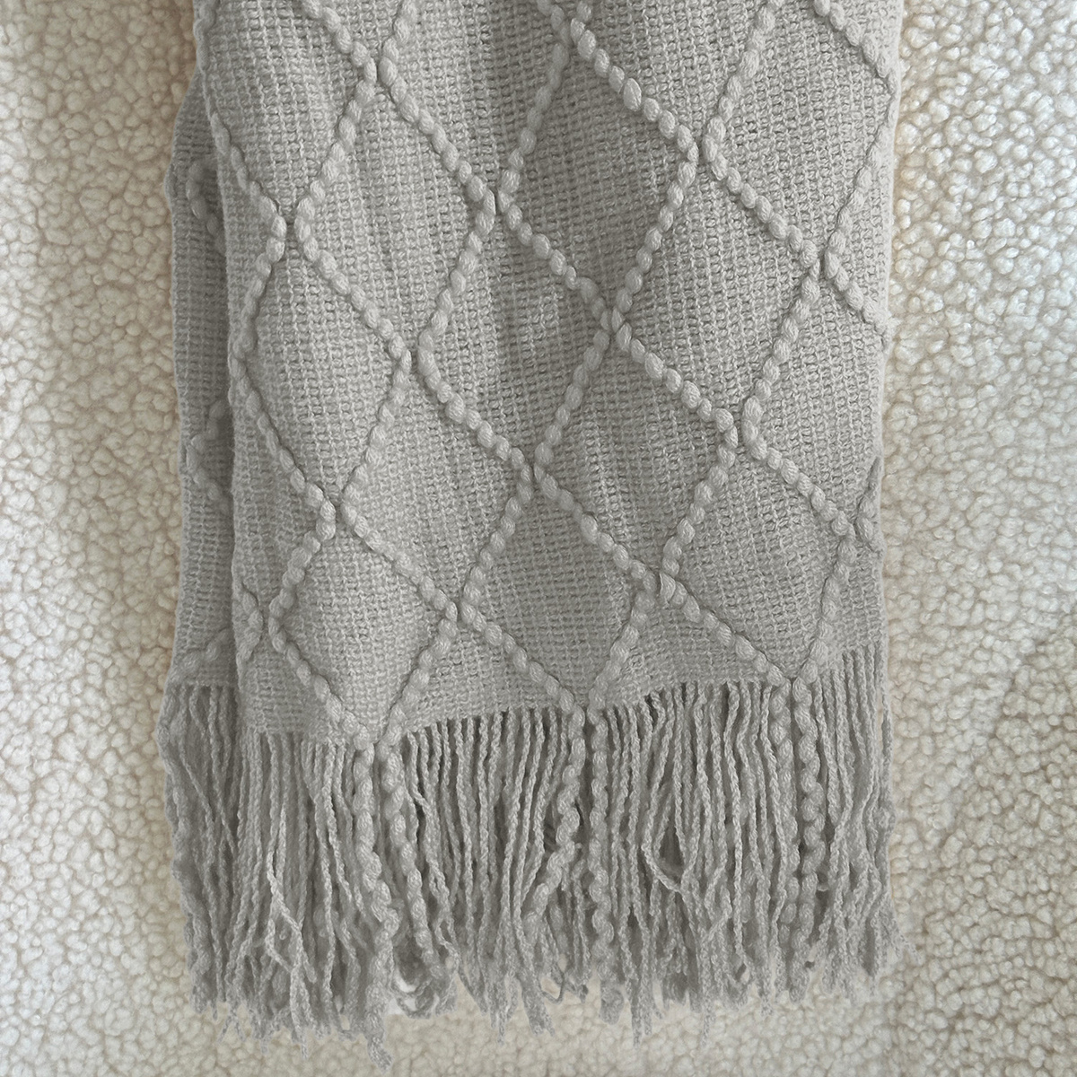 - Koce NERIA – żakardowe z frędzlami. 100% acrylic. Żakardowy, strukturalny wzór 3D. Jednobarwne, gramatura 280g/m2. Wyprodukowane w Chinach.