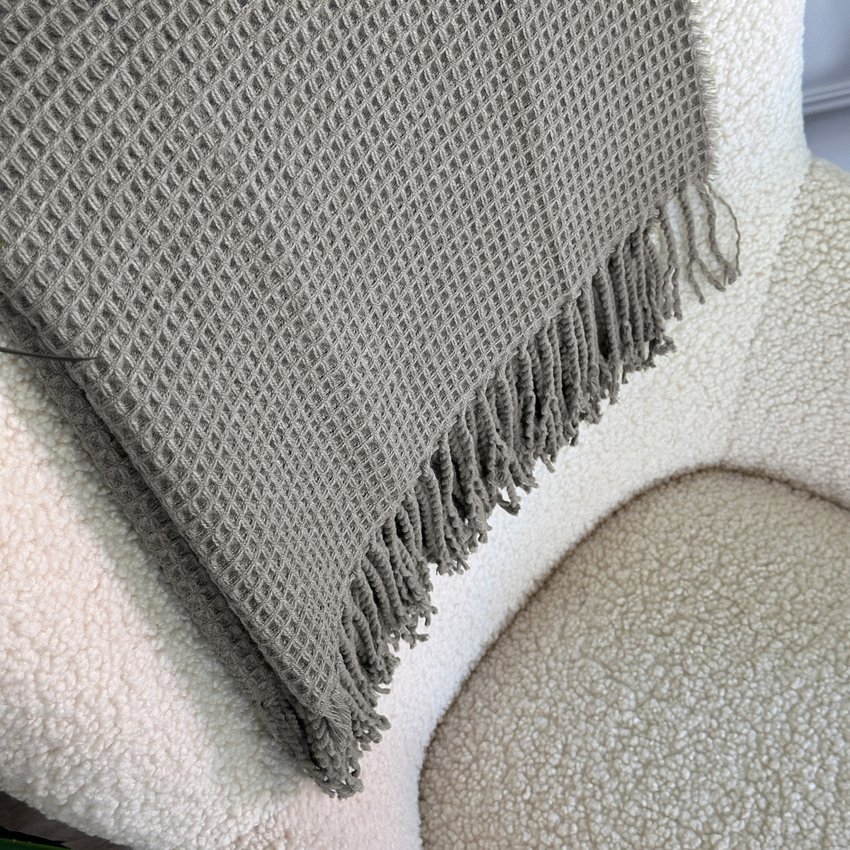 - Koce ALTA – żakardowe z frędzlami. 100% acrylic. Żakardowy, strukturalny wzór wafla 3D. Jednobarwne, gramatura 250g/m2. Wyprodukowane w Chinach.