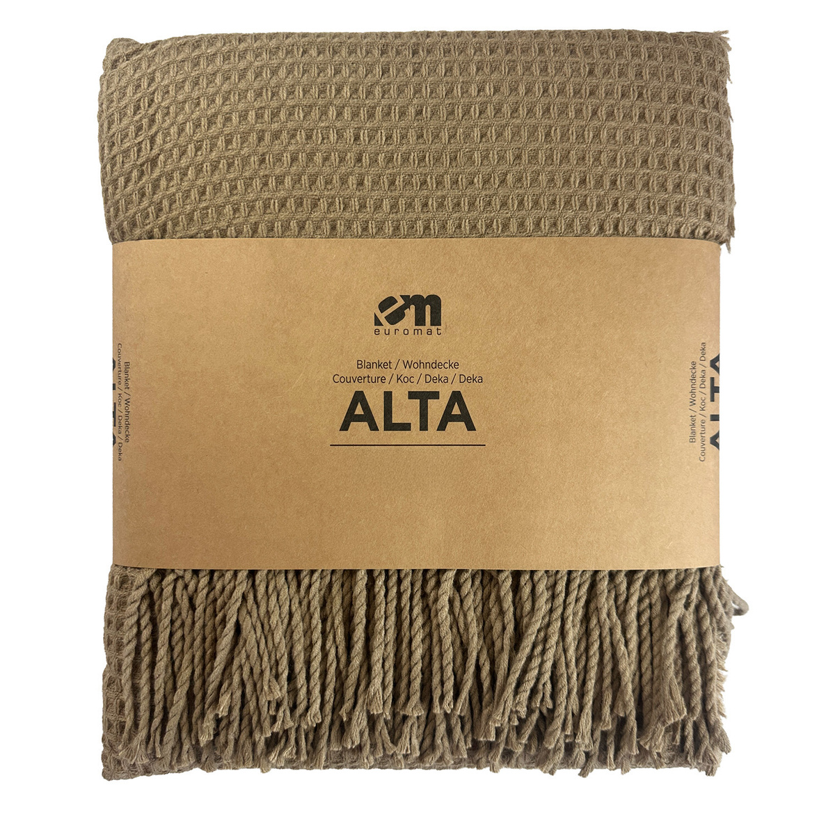 - Koce ALTA – żakardowe z frędzlami. 100% acrylic. Żakardowy, strukturalny wzór wafla 3D. Jednobarwne, gramatura 250g/m2. Wyprodukowane w Chinach.